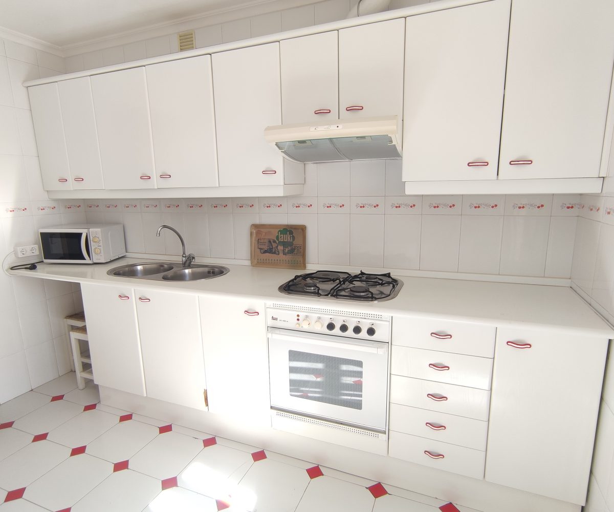 La vivienda destaca por su gran luminosidad y cómoda distribución. Dispone de dos amplios dormitorios, uno de ellos con armario empotrado, baño completo con bañera, y cocina totalmente equipada con salida a una práctica terraza lavadero.