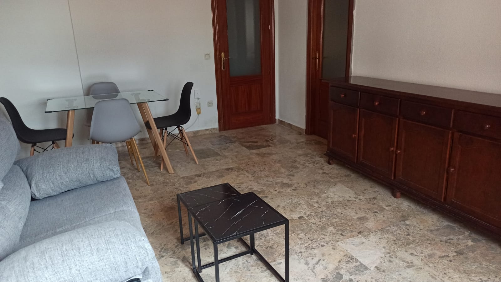 ✔ Salón muy luminoso, con sofá de dos plazas y mesa de comedor con sillas nuevas, creando un ambiente cómodo y acogedor.
