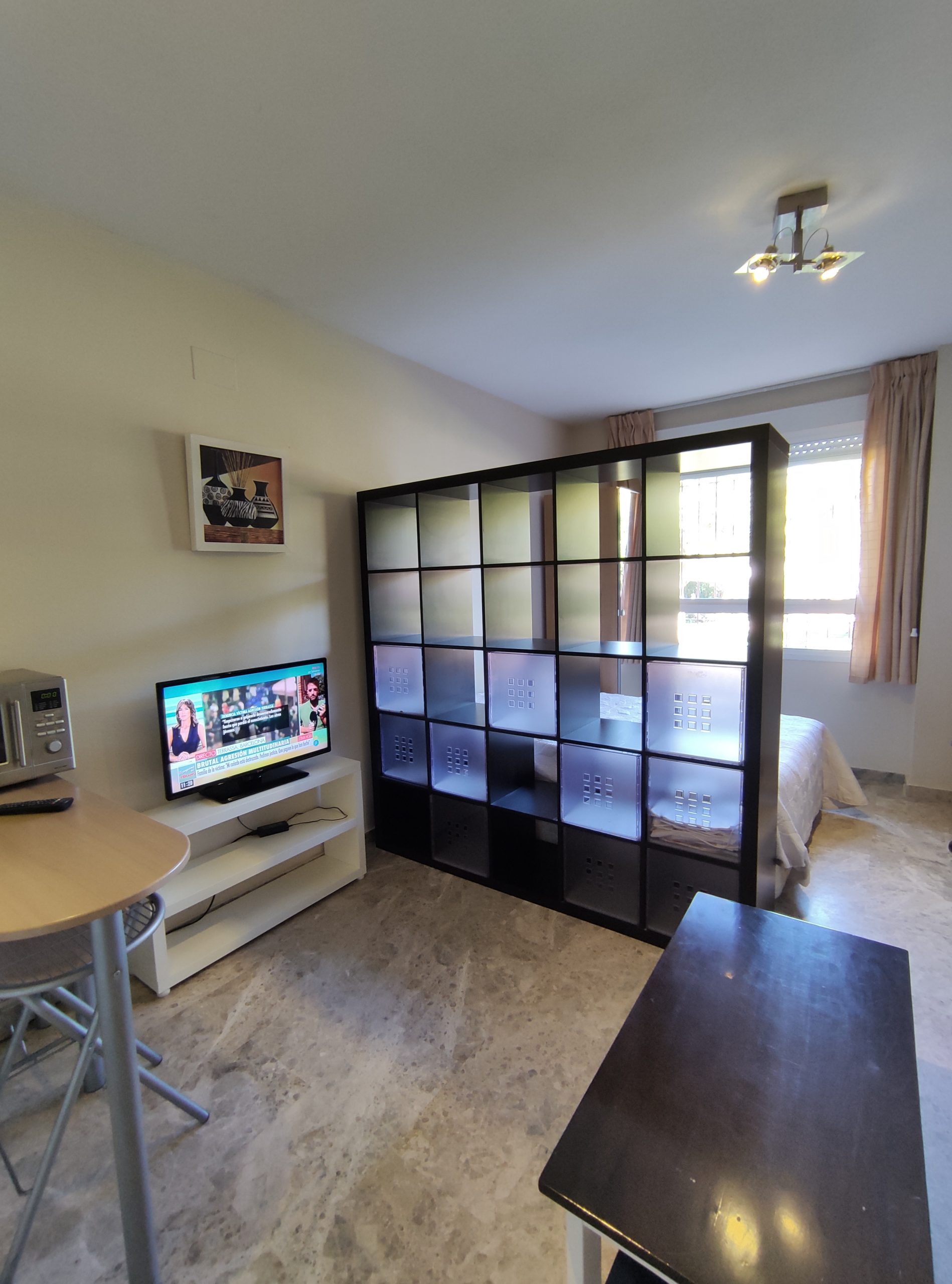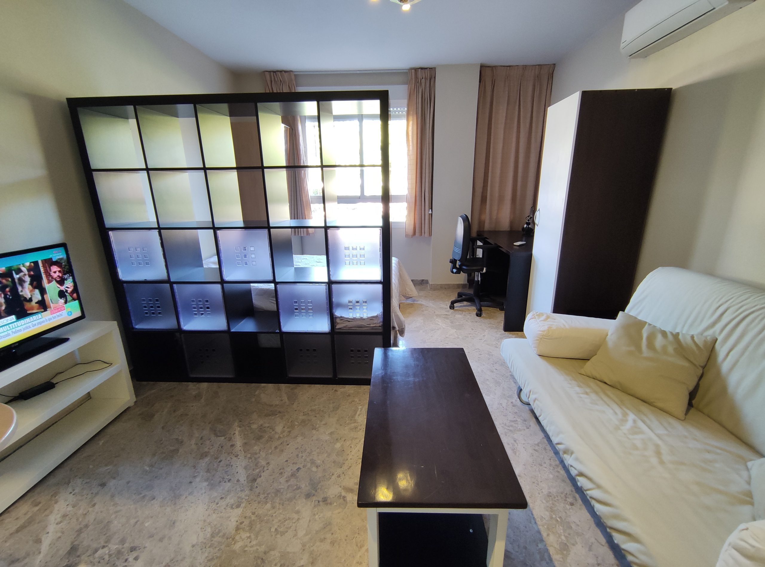 coqueto estudio en la zona universitaria de ciudad real, muy bien comunicado. Zona tranquila y buen vecindario. El piso consta de una cocina equipada, estilo office abierta al salón, con sofá – cama y televisor. Dormitorio en ambiente independiente con armario, mueble, y canapé. Suelos de mármol, aire acondicionado con bomba de calor y frío. Baño completo y grande, con lavadora de nueva generación. Suelos de mármol y estudio al exterior, grandes ventanas que proporcionan luminosidad. Muy bien aclimatado. PARA MÁS INMUEBLES VISITE DIMAR.