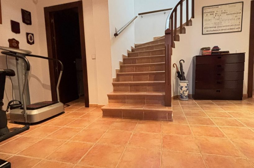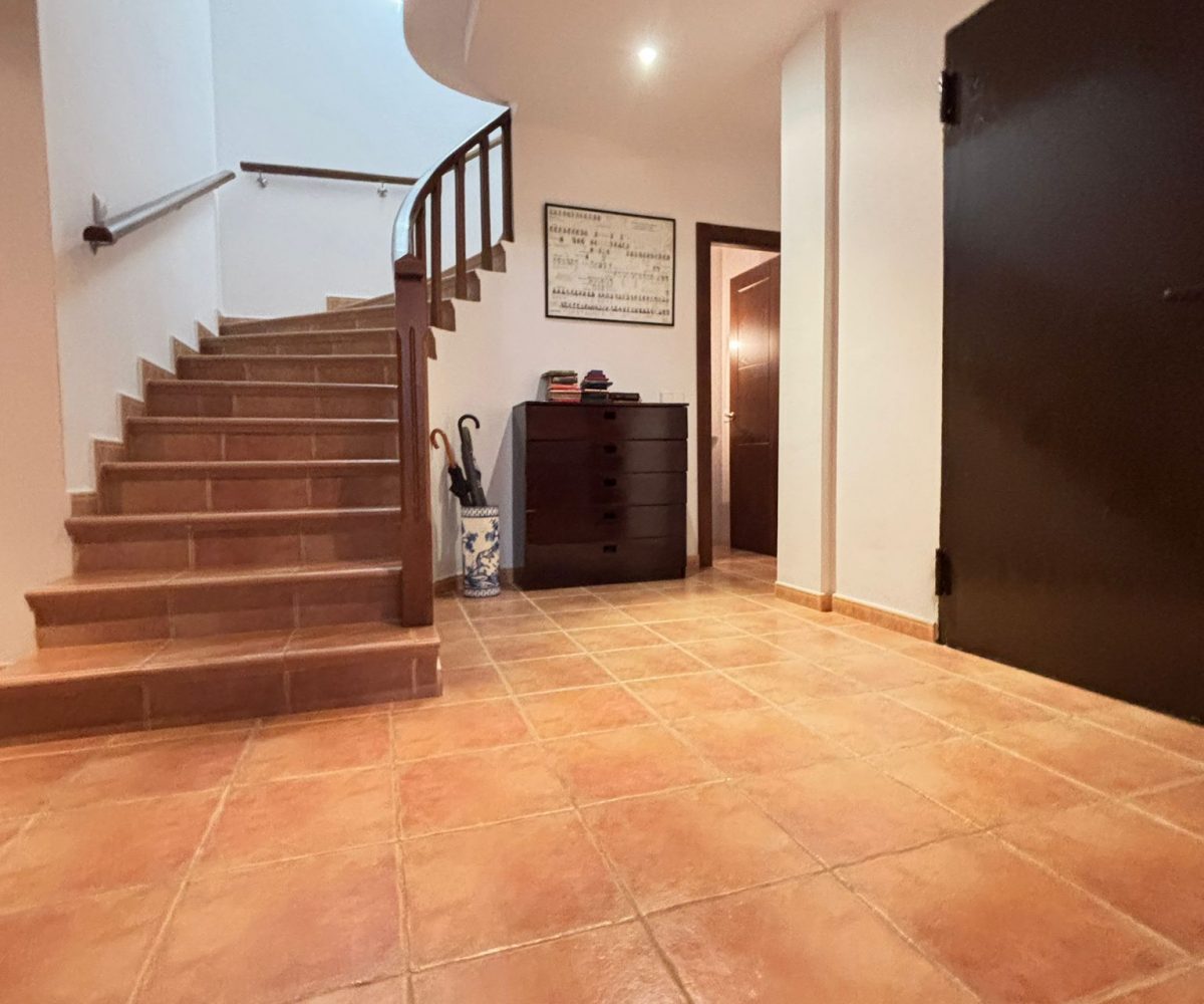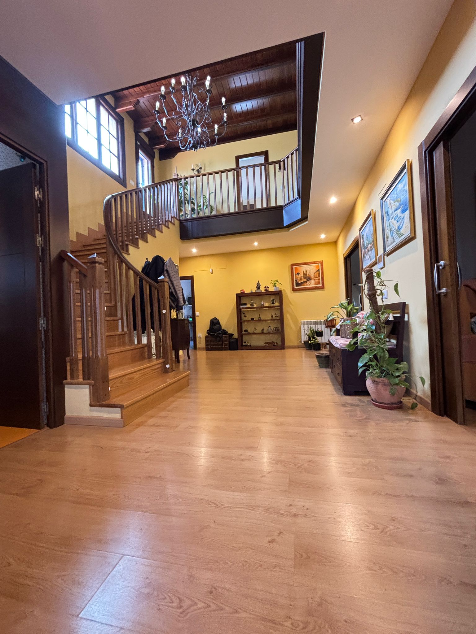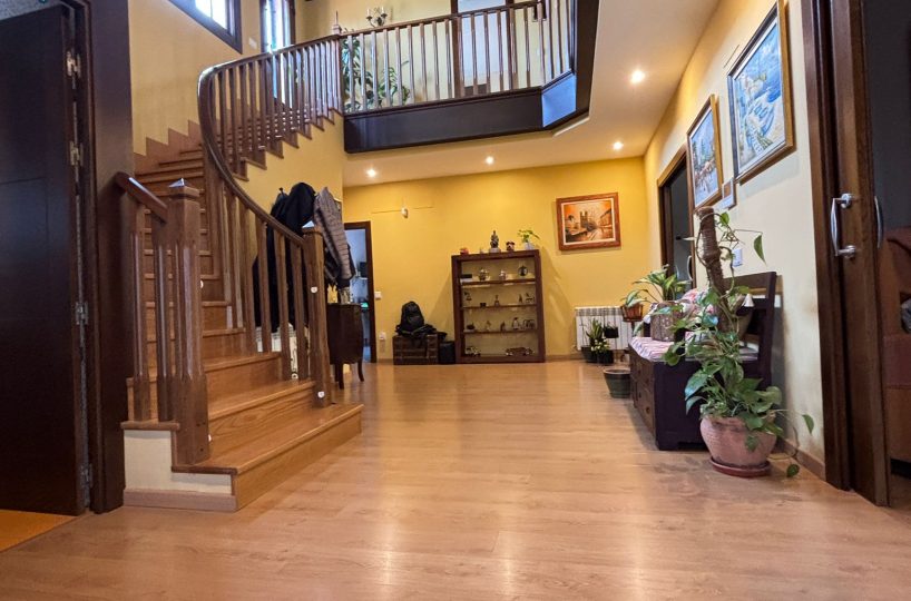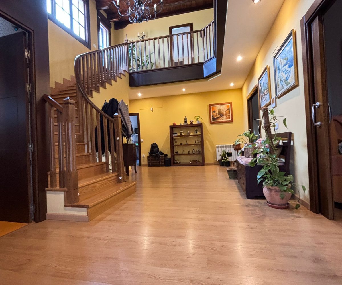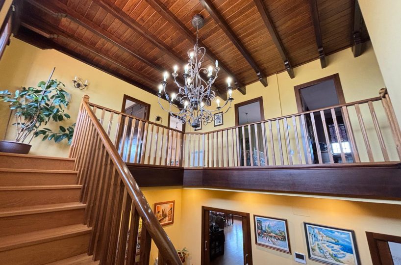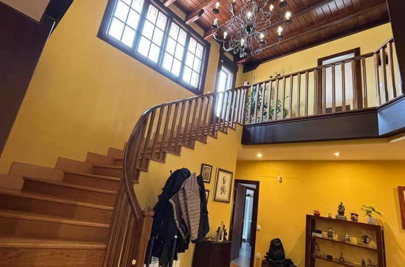 Desde el primer paso, la vivienda impresiona: un hall central y artesonado de madera que transmite elegancia, personalidad y exclusividad.