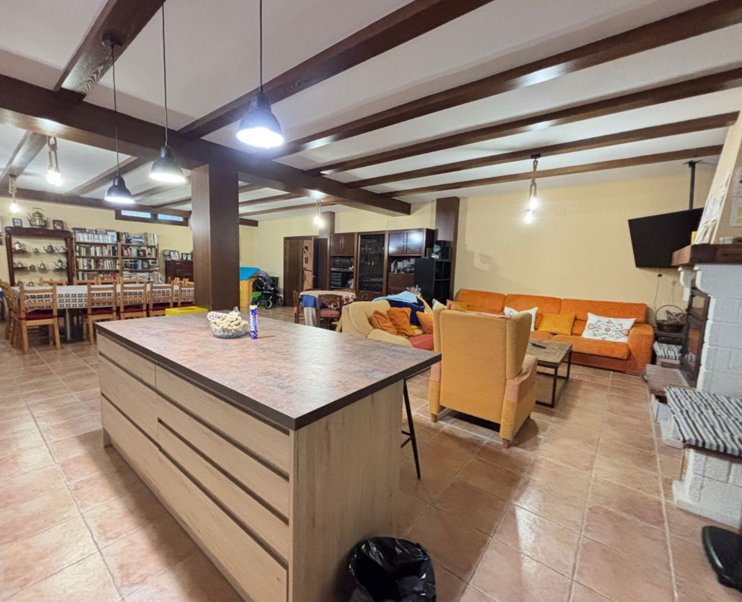 ✔ Salón de gran tamaño con varios ambientes (zona de estar, comedor, reuniones)